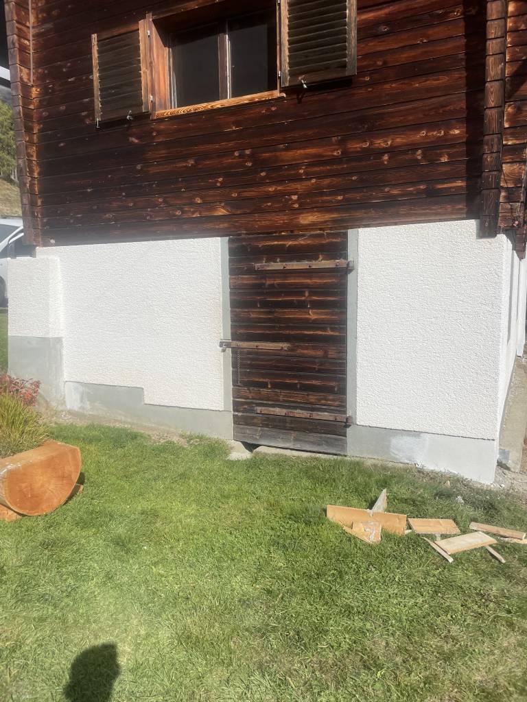 Der ursprüngliche Zustand zeigte einen beschädigten und unzureichend geschützten Sockelbereich.