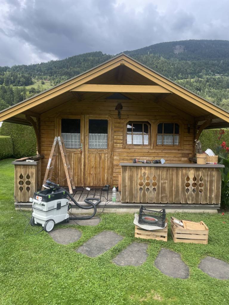 Bei diesem Projekt wurde die bestehende Außenfassade eines Gartenhauses vollständig erneuert.